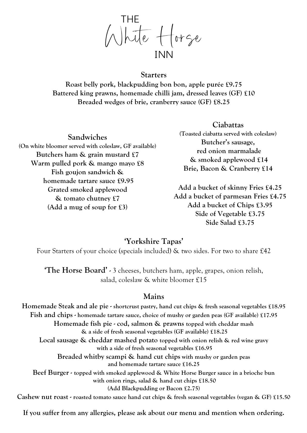 Take a look at our new menus. We use local suppliers and fresh produce to bring an amazing taste of Yorkshire to your plate.