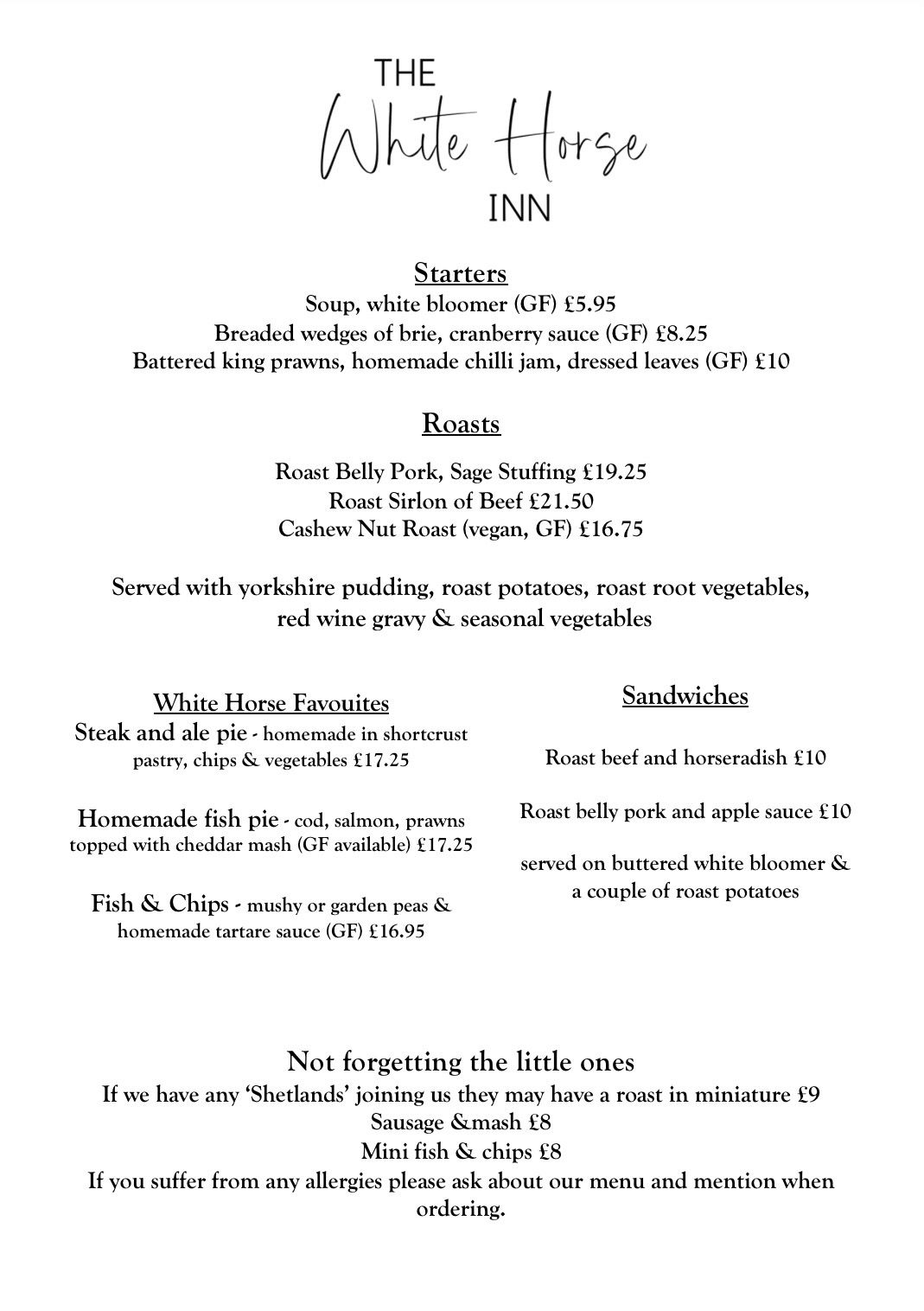 Join us in our cozy traditional bar on a rainy day, or outside bar on a sunny one. Try our new menu available Wednesday to Saturday, or join us for a traditional Sunday lunch.